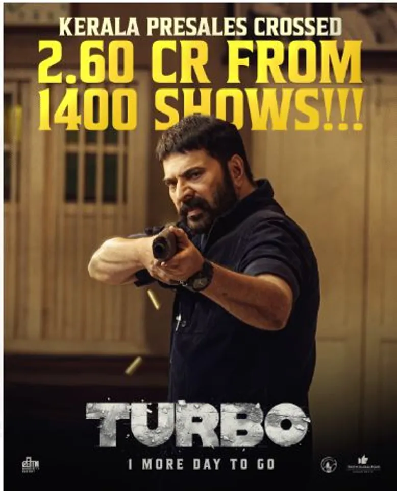 1,400 ഷോകളിൽ നിന്നായി 2.60 കോടി രൂപയുടെ ടിക്കറ്റുകളാണ് വിറ്റഴിഞ്ഞത്. ഭീഷ്മ പർവത്തിന്റെ റെക്കോർഡ് ഇതോട് കൂടി ടർബോ തിരുത്തിക്കുറിച്ചിരിക്കുകയാണ്. കേരളത്തിൽ മാത്രമല്ല ലോകമെമ്പാടും ചിത്രത്തിന്റെ ബുക്കിങ്ങ് അതിവേഗത്തിലാണ് നടക്കുന്നത്. ഓരോ നിമിഷം കഴിയുംതോറും ബുക്കിങ്ങ് അതിവേഗത്തിലാണ് നടക്കുന്നത്. യുകെയിൽ റെക്കോർഡുകൾ തകർത്തുകൊണ്ടാണ് ചിത്രത്തിന്റെ തേരോട്ടം. ജർമനിയിൽ ഏറ്റവും വലിയ റിലീസുള്ള മലയാള ചിത്രമായി ടർബോ മാറി.