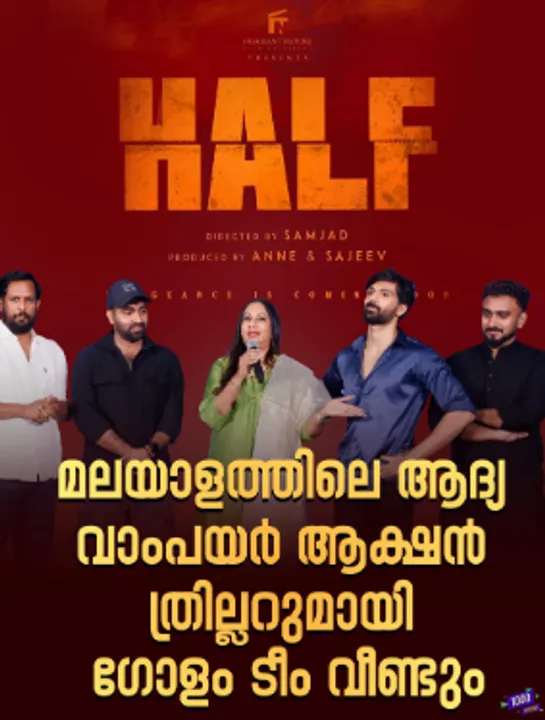 കഴിഞ്ഞ വർഷത്തെ സൂപ്പർ ഹിറ്റ് ചിത്രമായ ഗോളം എന്ന ചിത്രത്തിന് ശേഷം മലയാളത്തിൽ പുതിയ പരീക്ഷണവുമായി ഫ്രാഗ്രന്റ് നേച്ചർ ഫിലിം ക്രിയേഷൻസ്.ഹാഫ് എന്ന് പേരിട്ടിരിക്കുന്ന ചിത്രം ആൻ ,സജീവും ചേർന്നാണ് നിർമ്മിക്കുന്നത്.